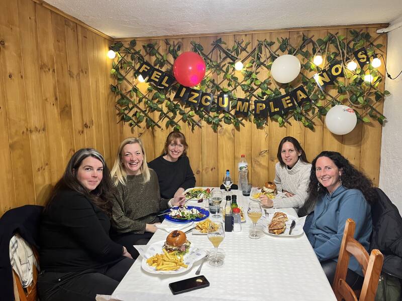 Mijn verjaardag is inmiddels ook geweest, na alle feestdagen (eerst 10 dagen bij papa en mama in huis, veel mensen gezien en daarna 3 dagen bij mijn schoonouders) vond ik het wel even prima. Ik dacht ik laat het een beetje rustig aan mij voorbij gaan. Uiteindelijk nog met Sjoerd en Fleur (die waren een paar dagen in Spanje) wat wezen drinken en 's avonds werd ik als verrassing mee uit eten genomen door een vriendin, wat ze niet had verteld was dat er nog drie anderen zouden komen. Het was én super gezellig maar bovenal gaf het mij echt het gevoel van, ik hoor erbij. Er zijn ook hier in Spanje mensen die het leuk vinden dat ik er ben. Ik geloof dat dankbaar wel het juiste woord was voor mijn gevoel die avond.